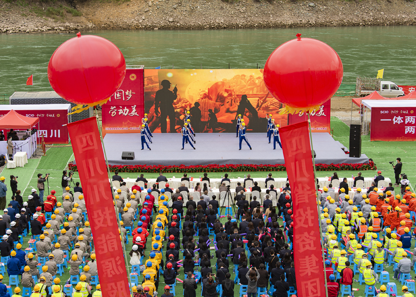 11月3日,在漂亮的金沙江畔银江水电站C2标施工现场,四川省总工会以“中国梦·劳动美”为主题,组织东方茉莉国乐团的艺术家们为一线劳动者们献上了一场精彩绝伦的视听盛宴,本次演出同步举行了网络直播,凌驾10万人举行网络寓目。