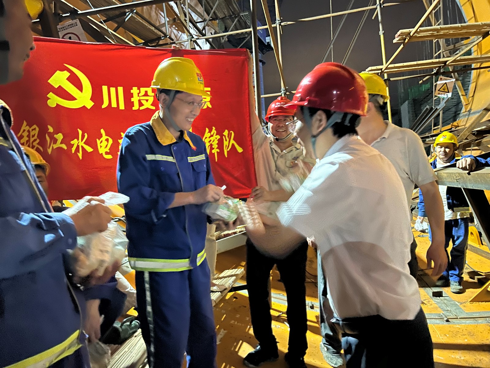 ½ÚÈÕµÄÒø½Ë®µçվʩ¹¤ÏÖ³¡£¬´ó°Ó»ìÄýÍÁ½½Öþ¡¢³§·¿Î²Ë®¹Ü»úµç×°ÖᢻìÄýÍÁ°èºÍϵͳµÈ¸÷²¿Î»Ò»Æ¬Ã¦Âµ£¬Îª°´ÆÚʵÏÖ¸÷Ïî½ÚµãÄ¿µÄ£¬800ÓàÃû½¨ÉèÕßÒÀÈ»·ÜÕ½ÔÚÒø½Ë®µçվʩ¹¤ÏÖ³¡¡£Ò¹ÍíµÄ¹¤µØ¸üÊǵƻðͨÃ÷£¬ÍíÉϾŵ㣬Àû¹ú¹ú¼ÊÀÏÅÆ¹ÙÍøÄÜÔ´¸±×Ü˾Àí£¬¹«Ë¾µ³×ÜÖ§Êé¼Ç¡¢¶Ê³¤ÐìТ¸ÕÏòµ¼¹«Ë¾µ³Ô±ÏÈ·æ¶Ó¡¢×ÔÔ¸Õß·þÎñ¶Ó£¬ÉîÈë»ìÄýÍÁ½½Öþ²ÖÃæ¡¢Î²Ë®¹Ü¡¢°èÔÓÂ¥µ÷ÀíÊÒ¡¢·ÀÑ´Öµ°àÊÒ¡¢±äµçÕ¾¡¢±£°²Í¤µÈ²¿Î»£¬½«ÈȺõºõµÄ¼¦ÍÈ¡¢Ïãð¥ð¥µÄôÕ×ÓµÈοÎÊÆ·Ë͵½ÕýÔÚÊ©¹¤µÄÿλ¹¤ÓÑÊÖÉÏ¡£ÐìТ¸Õ½²µ½£º¡°¶ËÎç½ÚÊÇÖлªÃñ×åÖ÷ÒªµÄ¹Å°å½ÚÈÕ£¬¶Ô¸÷È˼á³Ö·ÜÕ½ÔÚÒø½Ë®µçվʩ¹¤ÏÖ³¡¶·¿áÊî¡¢Õ½¸ßΡ¢ÌôµÆÒ¹Õ½ÌåÏÖлл£¬×£¸£¸÷È˶ËÎç°²¿µ£¡¡±»î¶¯ÖУ¬ÐìТ¸Õ»¹¿ªÕ¹ÁËÒ¹¼äÇå¾²¼ì²é£¬Öö¸À¸÷ÈË×öºÃ·À»¤¡¢È·±£Ê©¹¤Çå¾²¡£