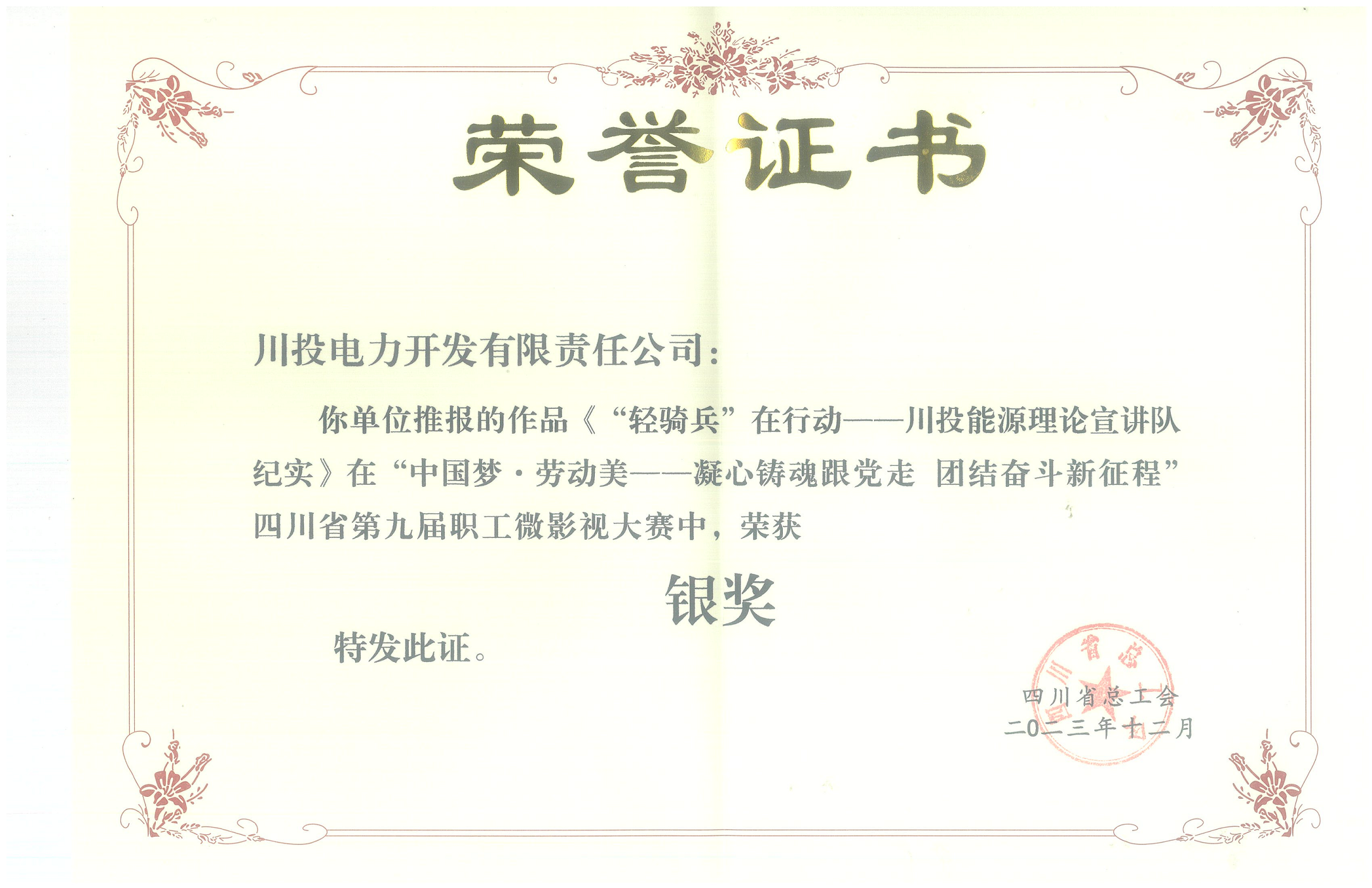 ¿ËÈÕ£¬¡°ÖйúÃΡ¤ÀͶ¯ÃÀ¡ª¡ªÄýÐÄÖý»ê¸úµ³×ß ÍŽᶷÕùÐÂÕ÷³Ì¡±ËÄ´¨Ê¡×ܹ¤»áµÚ¾Å½ìÖ°¹¤Î¢Ó°ÊÓ´óÈü»î¶¯ÂäÏÂá¡Ä»£¬ÓÉÀû¹ú¹ú¼ÊÀÏÅÆ¹ÙÍø¼¯Íʤ»áÑ¡ËÍ¡¢Àû¹ú¹ú¼ÊÀÏÅÆ¹ÙÍøÄÜÔ´¼°ËùÊôÀû¹ú¹ú¼ÊÀÏÅÆ¹ÙÍøµçÁ¦×éÖ¯ÅÄÉãµÄ΢ӰϷ¡¶¡°ÇáÆï±ø¡±ÔÚÐж¯¡ª¡ªÀû¹ú¹ú¼ÊÀÏÅÆ¹ÙÍøÄÜÔ´ÀíÂÛÐû½²¶Ó¼Íʵ¡·ÔÚȫʡ176²¿×÷Æ·ÖÐÍÑÓ±¶ø³ö£¬ÈÙ»ñ¹ÊÊÂÀàÎ¢Ó°Ï·Òø½±¡£