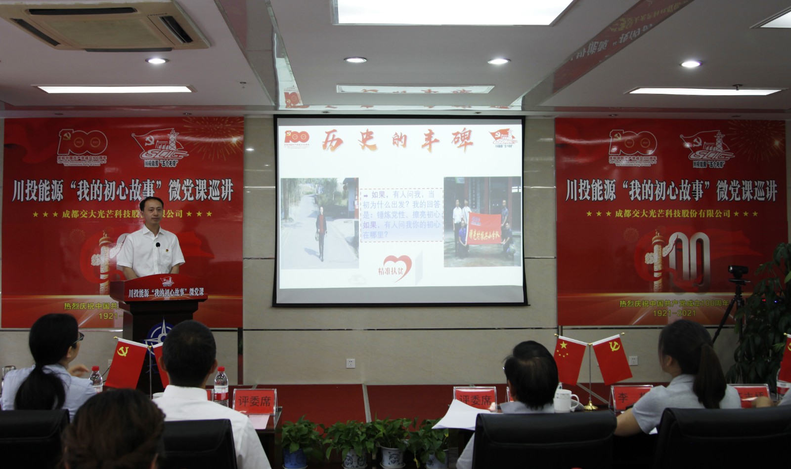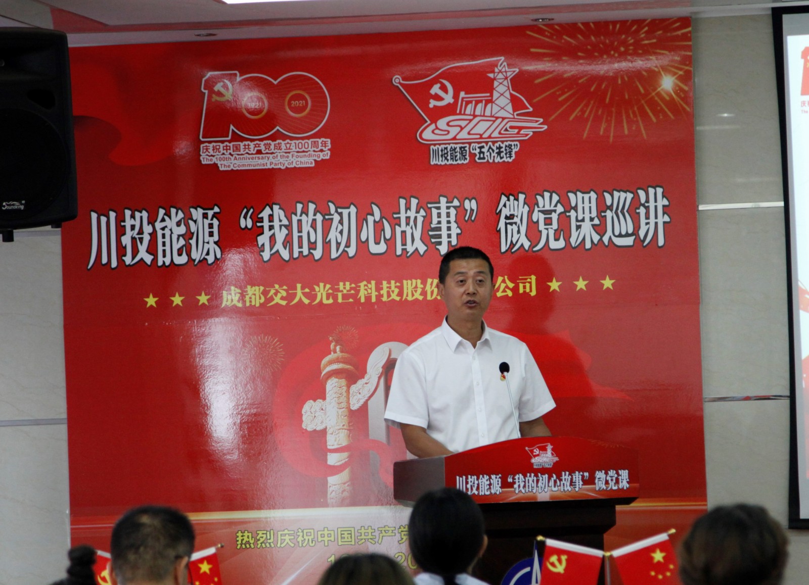 在全党深入开展党史学习教育之际,5月25日,利国国际老牌官网能源“我的初心故事”微党课巡讲团走进交大光线。微党课巡讲团由能源本部、天彭电力、槽渔滩公司、交大光线、利国国际老牌官网电力和攀水电公司选派的6名优异党员代表组成。利国国际老牌官网能源党委副书记、工会主席杨超龙,交大光线党总支书记、总司理刘成辉和交大光线党员、员工代表30余人加入本次活动。