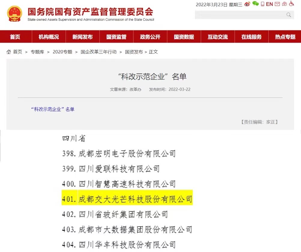 3ÔÂ22ÈÕ£¬½»´ó¹âÏß×÷ΪËÄ´¨Ê¡Æß¼ÒÈëÑ¡ÆóÒµÖ®Ò»£¬±»¹úÎñÔº¹ú×ÊίÄÉÈë¡°¿Æ¸ÄÊ÷Ä£Ðж¯¡±ÆóÒµ£¬´Ë´Î¡°ÈëÑ¡¡±£¬ÊǼÌ2021ÄêÈëÑ¡ËÄ´¨Ê¡¹ú×Êί¡°Ì츮¹úÆó×ÛºÏË¢ÐÂÐж¯¡±ÆóÒµµÄÓÖÒ»ÖØ´óÍ»ÆÆ£¬Ò²ÊÇÊ¡Êô¿Æ¼¼ÐÍÆóÒµÖÐΪÊýδ¼¸µÄ¡°Ë«ÈëÑ¡ÆóÒµ¡±£¬¸ø¹«Ë¾ÉˢС¢×ÔÖ÷Á¢Òì¡¢¿çÔ½Éú³¤ÔÙÌíлîÁ¦¡£