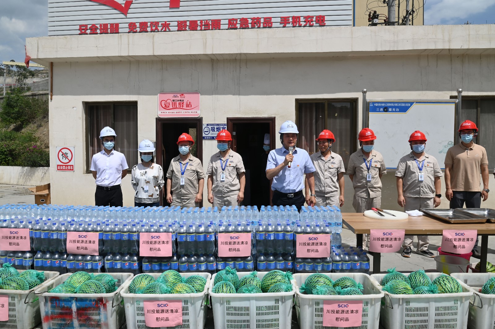ȽÀ¼Æ½Ò»ÐÐÔÚÒø½Ë®µçÕ¾¡°°®ÐÄæäÕ¾¡±¼¯ÖÐοÎÊÁ˳¤½Éè¼Æ¹«Ë¾¡¢¹óÑôÔº¼àÀí¡¢¶þ̲½¨Éè¼àÀí¡¢»ª¶«Ôº¼àÀí¡¢Ë®µçÎå¾Ö¡¢Ë®µçÆß¾Ö¡¢Ë®µçÊ®¾Ö¡¢ËÄ´¨Â·ÇŵÈÖ÷Òª²Î½¨µ¥Î»£¬Îª¸÷ÈËËÍÉÏÎ÷¹Ï¡¢¿óȪˮ¡¢ÇåÁ¹ÒûÆ·µÈ·ÀÊî½µÎÂÎï×Ê£¬ÈÃÒ»Ïß½¨ÉèÕßÃÇÔÚ¿áÊîÖиÐÊܵ½ÁËÇ×Èȵľì×¢ºÍÊæÐĵÄÁ¹Òâ¡£